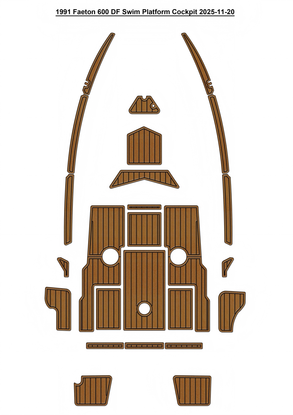 1991 Faeton 600 DF Swim Platform Cockpit Pad Boat EVA Foam Faux Teak Deck Floor Mat SeaDek MarineMat Gatorstep Style Self Adhesive