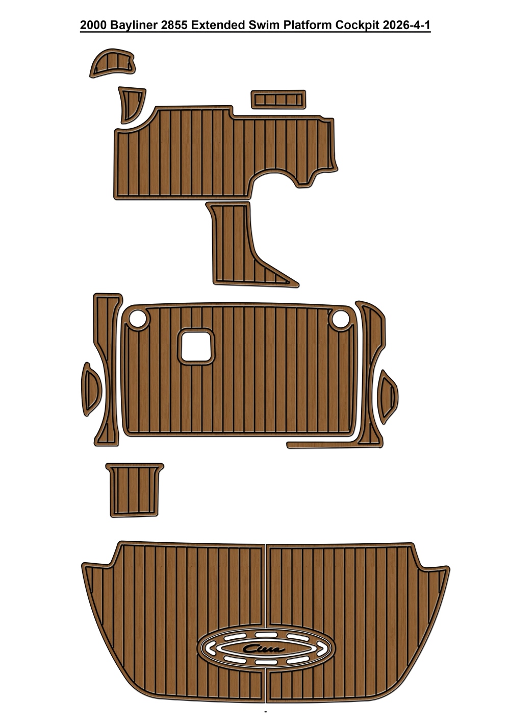 2000 Bayliner 2855 Extended Swim Platform Cockpit Boat Pad EVA Foam Faux Teak Deck Floor Mat Seadek MarineMat Gatorstep Style Self Adhesive