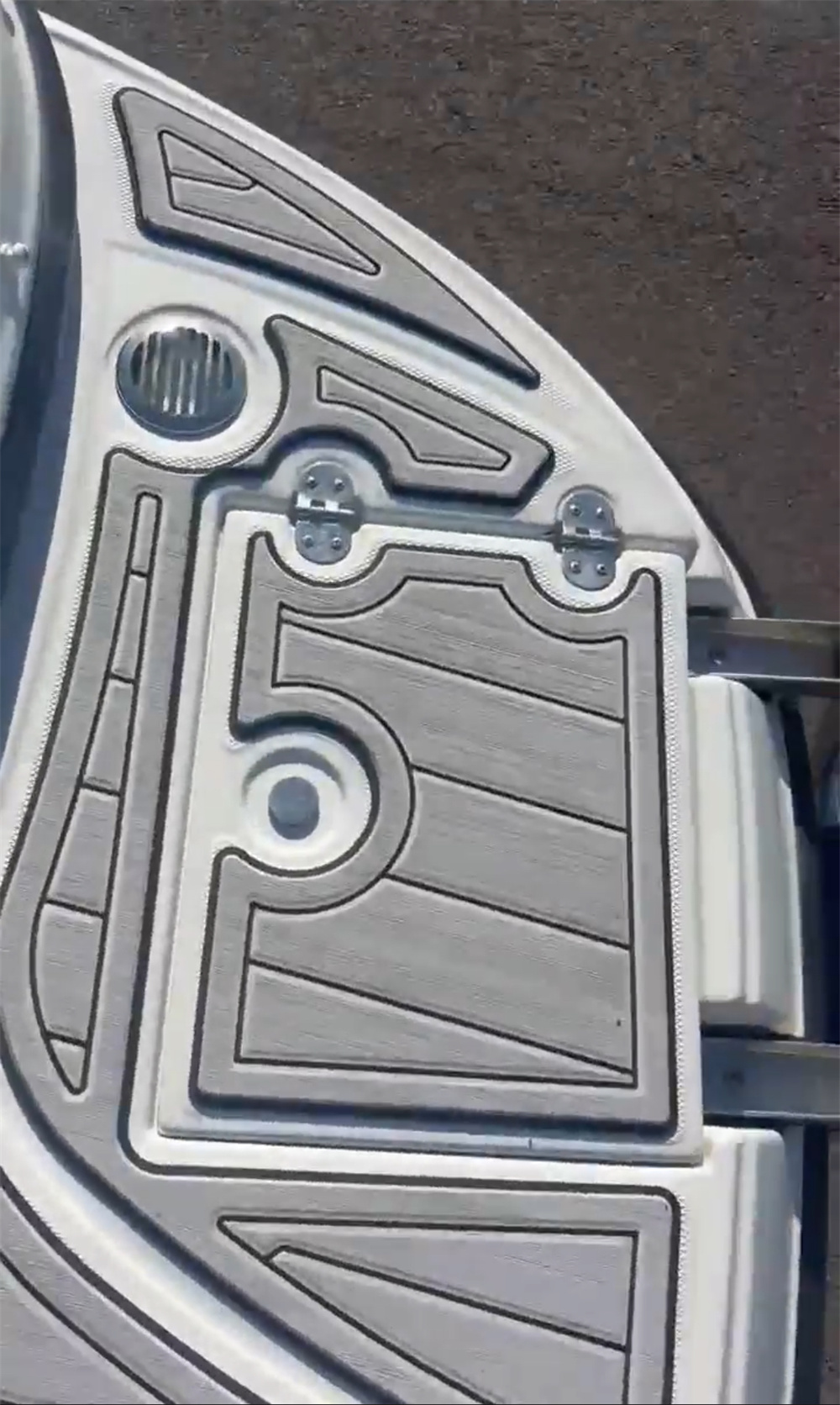The EVA floor is 1/4″(6mm) thick two-color pad. You can choose your colors, texture and faux teak option. Additional custom text logos can also be incorporated on EVA floor. All routed logos and beveled edges will show the bottom color selected. All EVA floors come with marine backing glue. All EVA floors listed on our online store are “made to order” and not stocked so please allow up to 2-3 weeks for delivery.