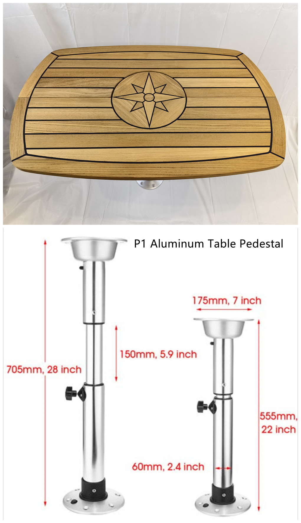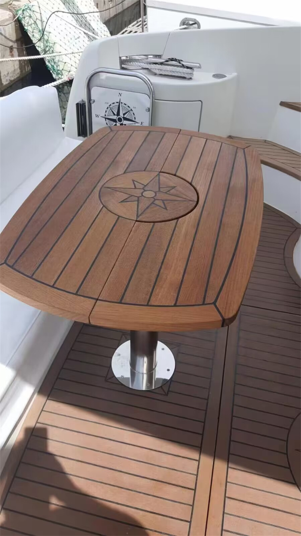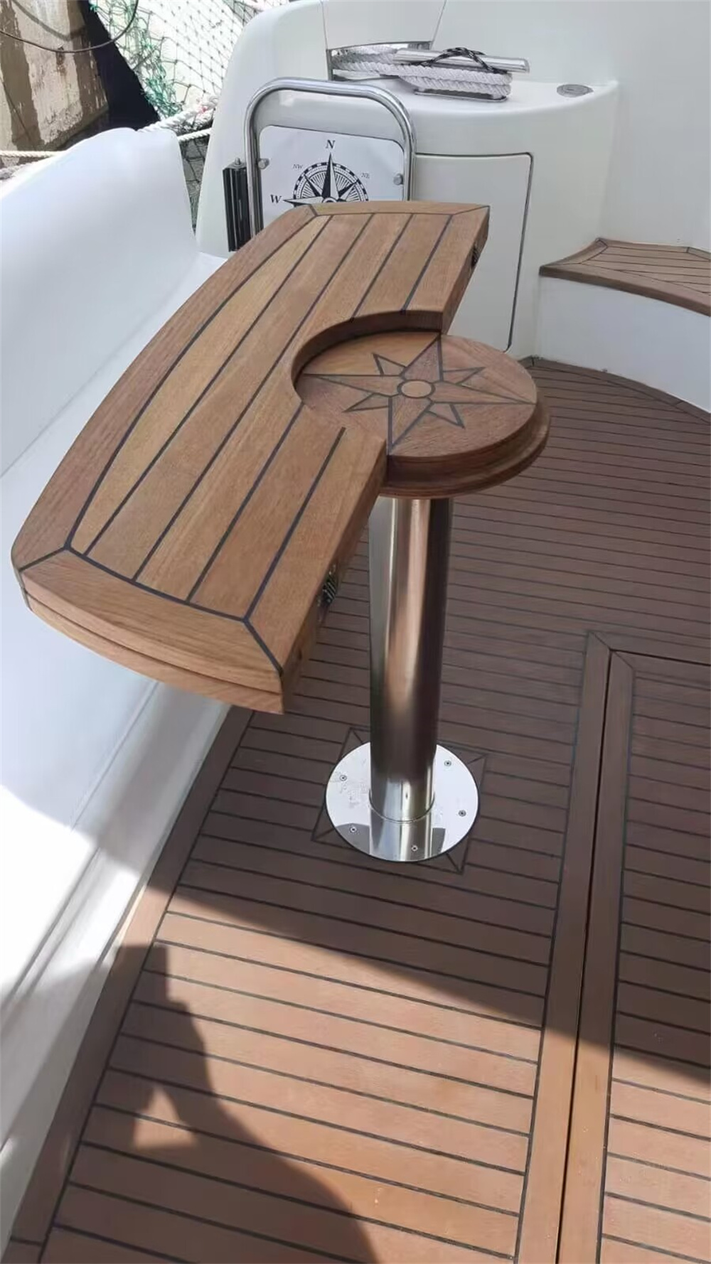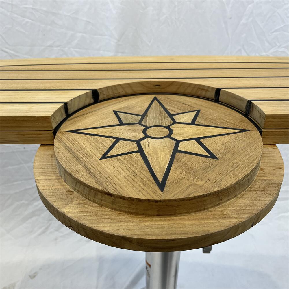 Barrel Folding Solid Teak Table Top 300/610x940mm,11.8/24×37 Inch Star Inlay Marine Boat Yacht Caravan TC642