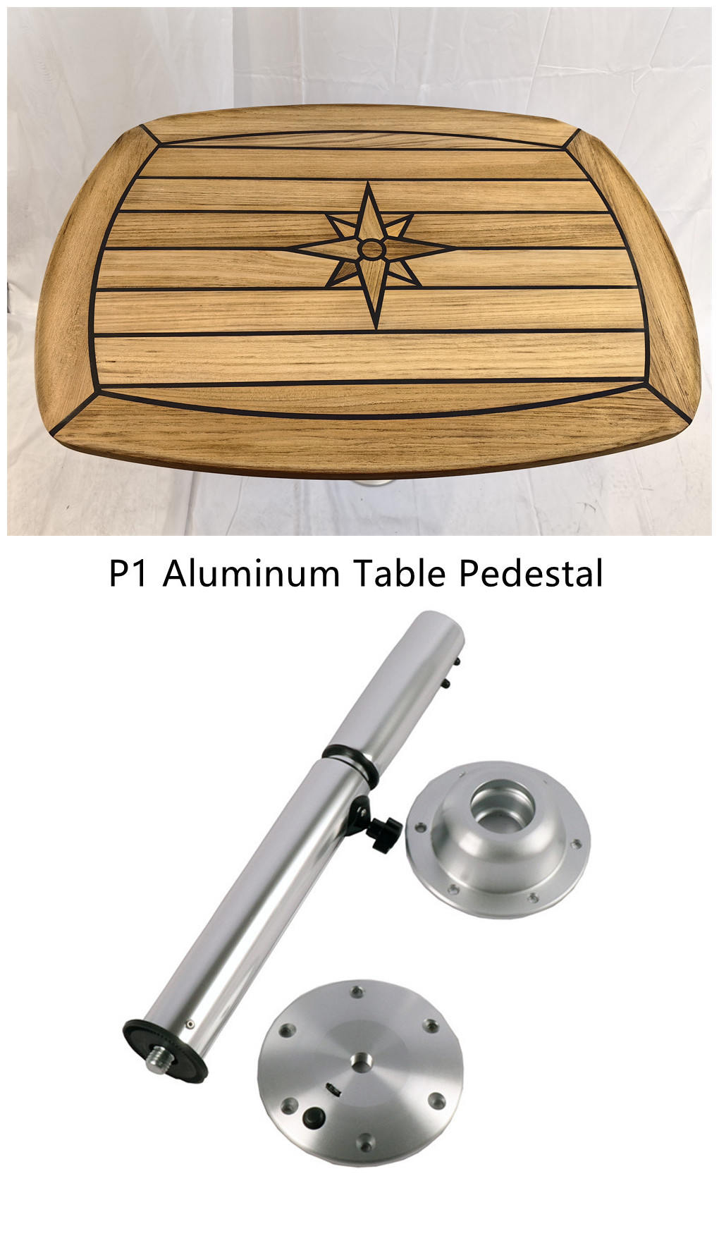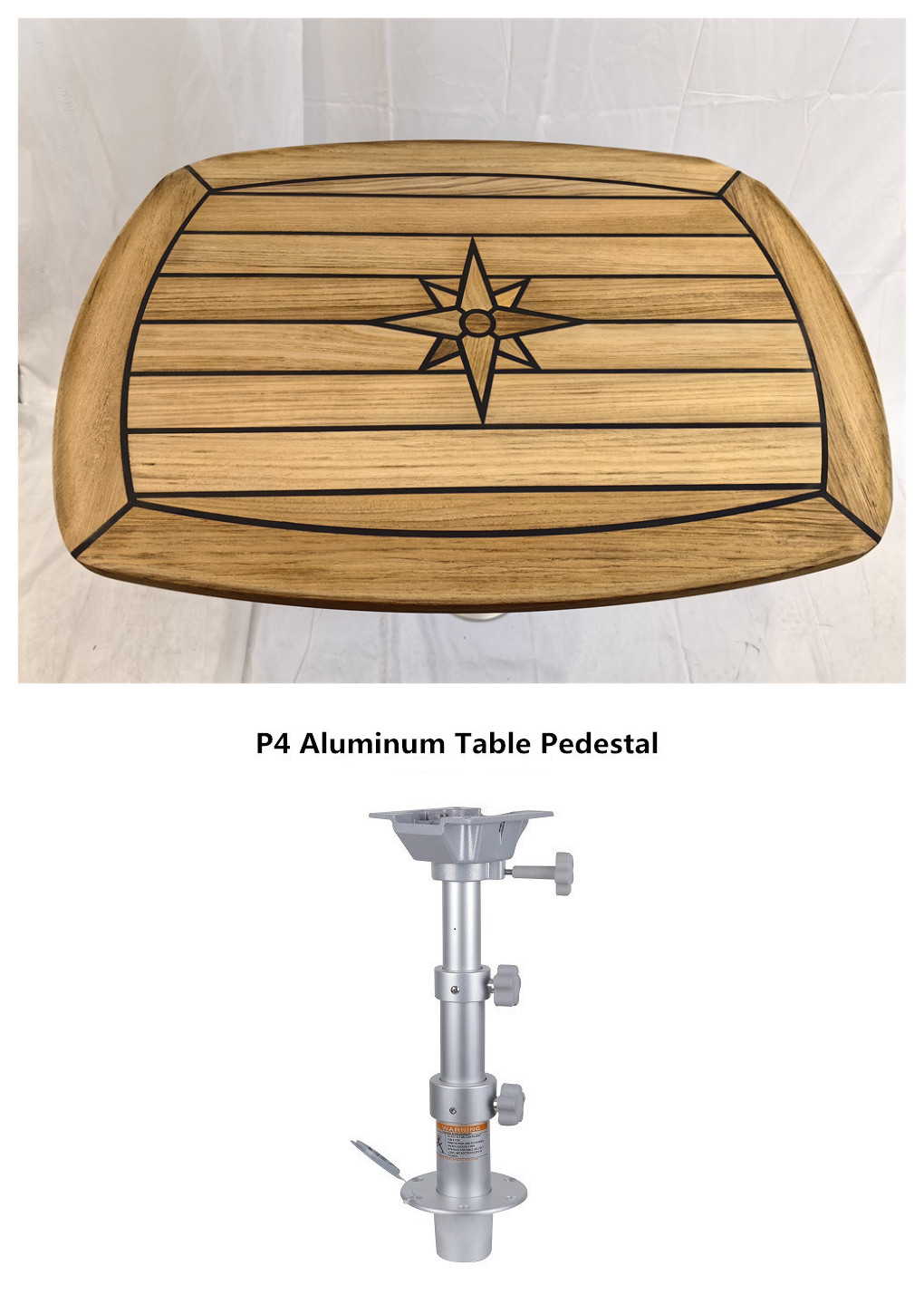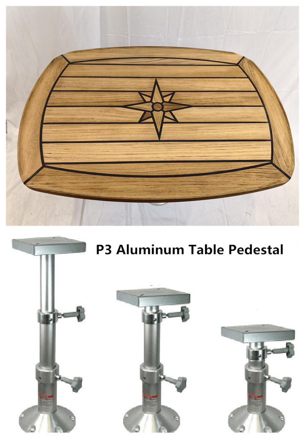 Barrel Shaped Teak Table Top 450×600/500×700/610x940mm,17.7×23.6/19.7×27.5/24×37 Inch Star Inlay Marine Boat Yacht Caravan RV