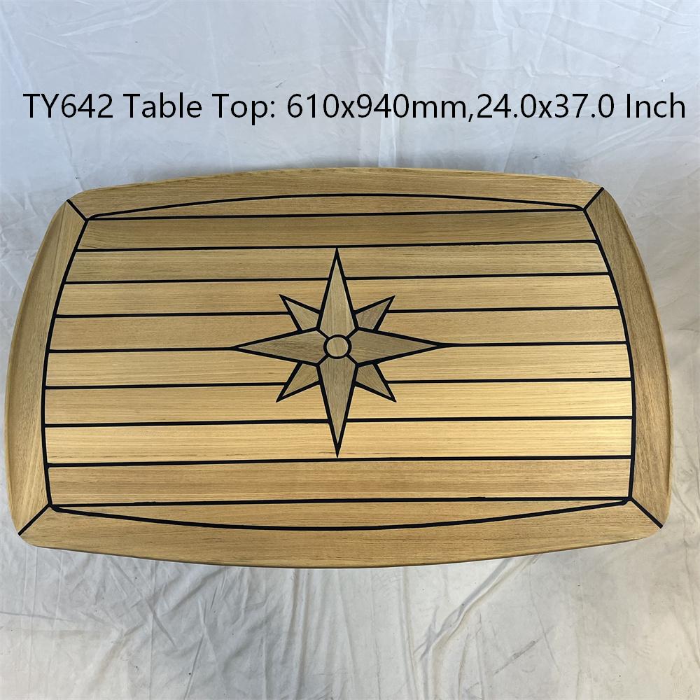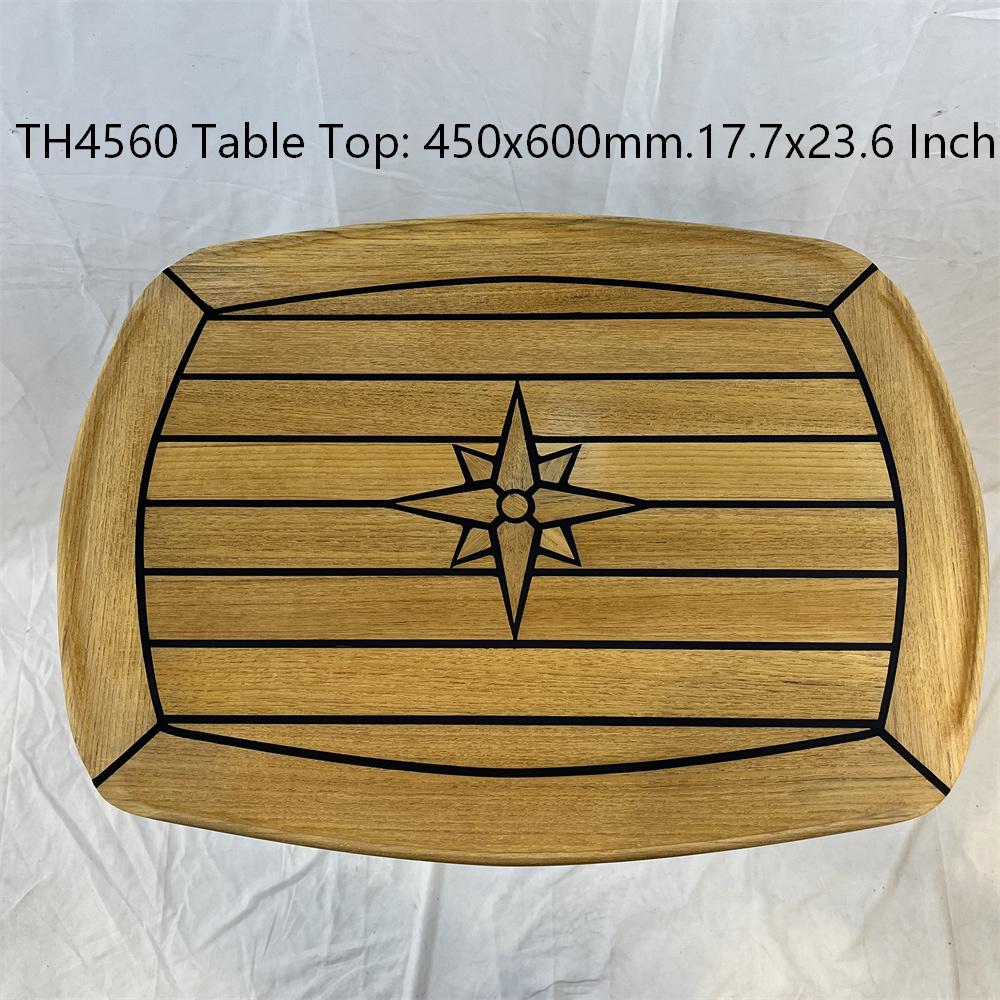 Barrel Shaped Teak Table Top 450×600/500×700/610x940mm,17.7×23.6/19.7×27.5/24×37 Inch Star Inlay Marine Boat Yacht Caravan RV