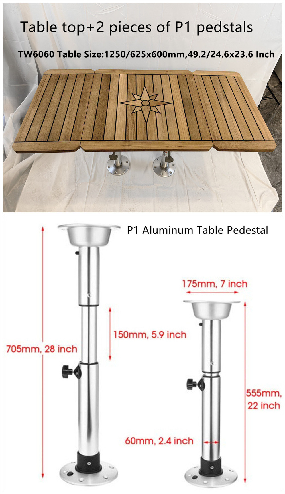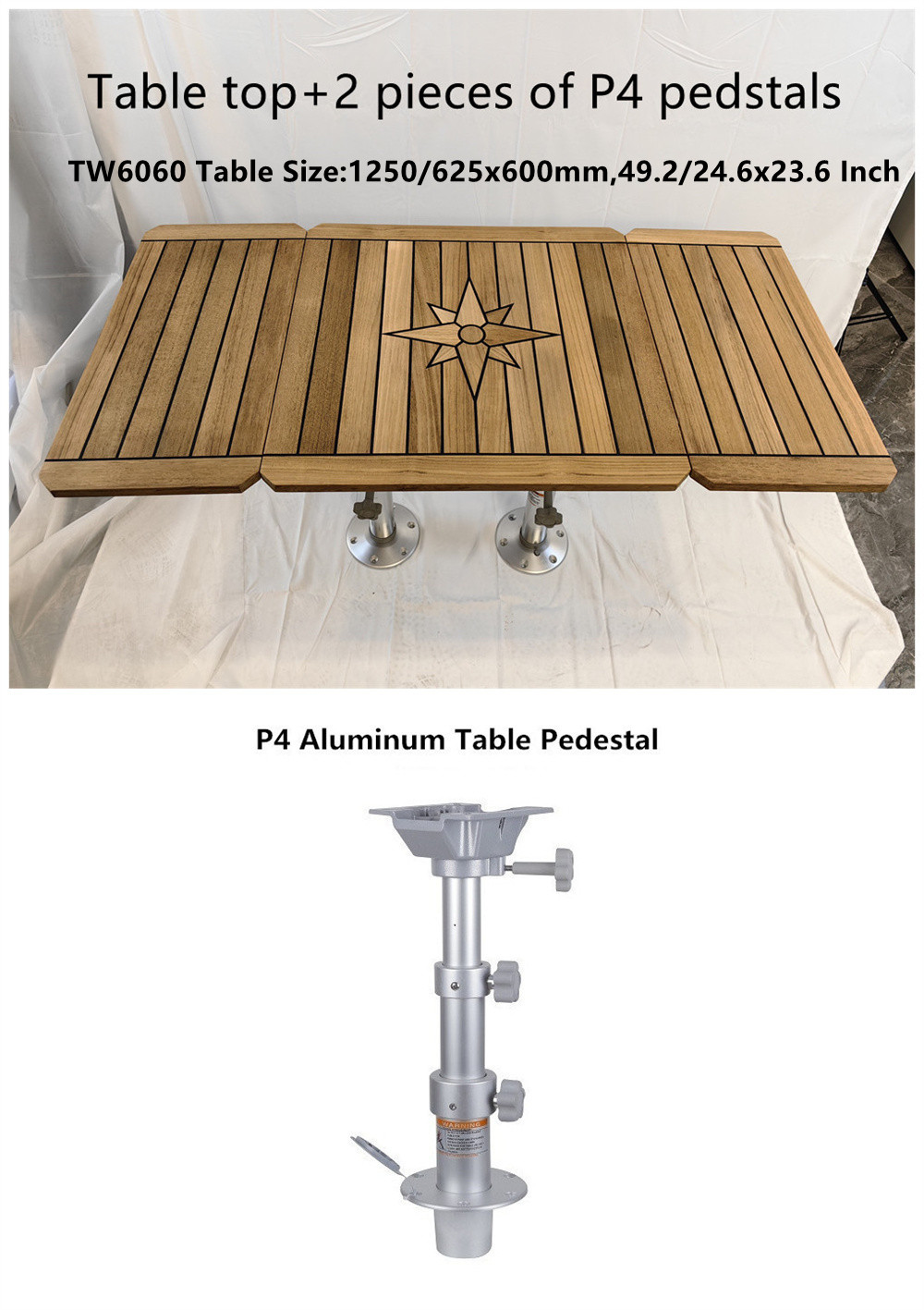 Folding Wings Solid Teak Table Top 1250/640X600mm,49.2/25.2×23.6 Inch Star Inlay Boat Marine Yacht RV TW6060
